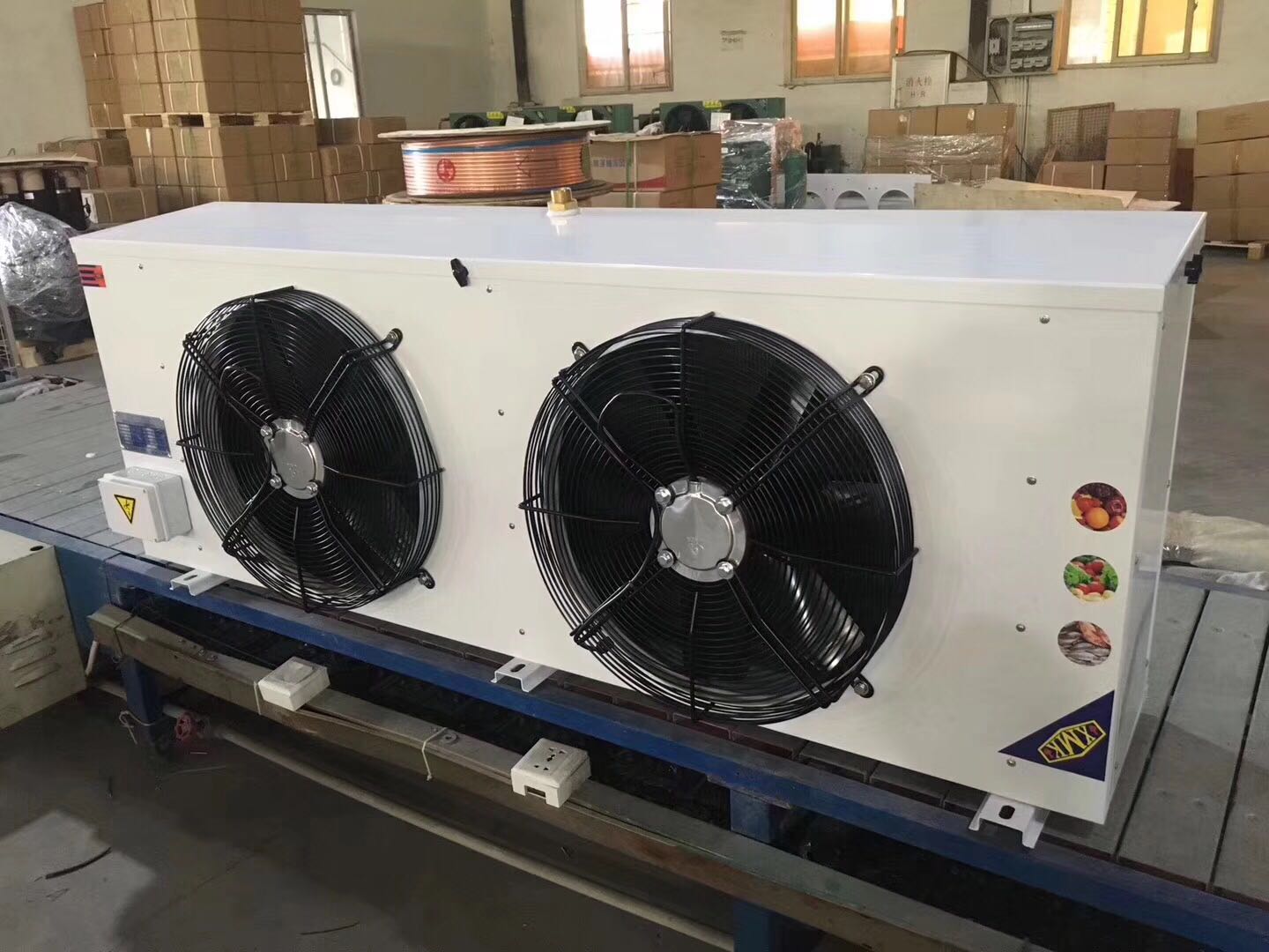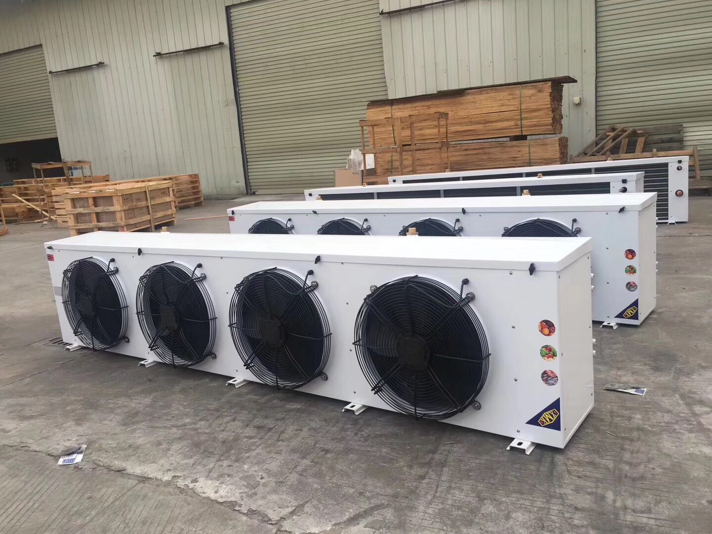 D型(吊頂式)、L型(落地式)、S型(雙出風(fēng)式)系列空氣冷卻器(又稱(chēng) 冷風(fēng)機(jī))是一種適用于各種冷庫(kù)(如土建冷庫(kù)或組合冷庫(kù))的冷卻降溫設(shè)備,分 別使用于不同庫(kù)溫的冷庫(kù)。它具有結(jié)構(gòu)緊湊,重量輕,不占用冷庫(kù)使用面積,庫(kù) 溫均勻,效率高等優(yōu)點(diǎn),使冷庫(kù)內(nèi)貯藏的食品迅速降溫,大大提高了貯藏食品的 保鮮度。